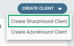 - On the right side, click Create Client and, from the drop-down, select one of the collector clients, for example Create SharpHound Client