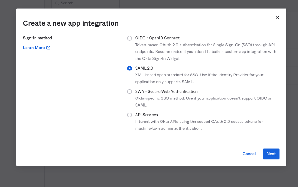 - Once finished, click next to begin setting the SAML configuration for this application.